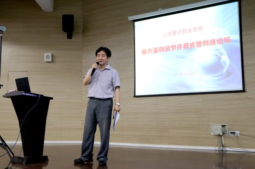 這次科技節(jié)開幕式上,來自六個學院的專家結合本學院專業(yè)發(fā)展和科技創(chuàng)新理念及設想給大家?guī)砹司实难葜v。如公共衛(wèi)生與護理學院的司曉晶副院長結合當今科技發(fā)展的熱點講述《石墨烯在生物傳感器中的應用》,讓我們了解了這種新材料的神奇之處;機電工程學院的姚黎明院長帶來了《芻議我國互聯網+的3D》,帶領大家認識互聯網的前世今生,展望未來發(fā)展的無限可能;東方電影學院姚曉蒙院長的《從拍攝電視劇“悲壯英雄”看當前影視劇的發(fā)展》,把科技融入實踐讓我們看到電影和科技的有機結合;傳媒藝術學院葉沖副院長的《大數據驅動下的“數據新聞”》讓聽眾耳目一新,看到新聞背后的科技含量;經濟管理學院王歡書記的《競技生態(tài)云平臺開創(chuàng)互聯網沙盤教學新時代》把科技元素融入教學,給學生帶來全新的感受;教育學院李杰主任的《播撒希望的種子》,把培養(yǎng)學生創(chuàng)新能力作為一項重要的教學內容,豐富了學前教育的內涵。