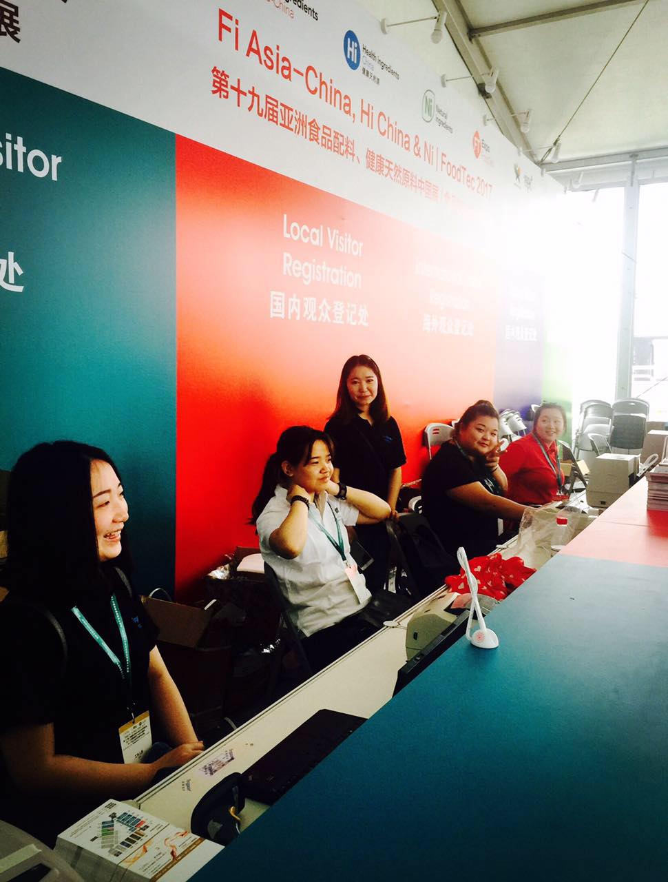 這次實(shí)訓(xùn)是參加在“上海新國(guó)際博覽中心”舉行的第十七屆世界制藥原料展中國(guó)展的志愿者服務(wù)。15級(jí)藥學(xué)專業(yè)同學(xué)于6月19日下午在國(guó)際博覽中心接受各自崗位的培訓(xùn),6月20日到6月22日進(jìn)行志愿者服務(wù)。本次參加志愿者服務(wù)的學(xué)生有200余人,主要崗位分別有管理通道、自助機(jī)、服務(wù)臺(tái)和填表臺(tái)。填表臺(tái)作為觀眾入場(chǎng)的第一關(guān)卡,志愿者要耐心的指導(dǎo)各位觀眾通過二維碼進(jìn)行注冊(cè),對(duì)于年紀(jì)較大的不善使于用微信的觀眾幫助他們填表完成注冊(cè)。注冊(cè)完成的觀眾可以去服務(wù)臺(tái),服務(wù)臺(tái)的同學(xué)會(huì)根據(jù)其填寫的基本信息錄入電腦,打印觀眾證,自助服務(wù)機(jī)同學(xué)的則幫助進(jìn)行自助打印。獲取觀眾證后的觀眾通過安檢,管理通道的同學(xué)對(duì)觀眾證上條碼的掃描,鑒別觀眾證的真?zhèn)?。各崗位同學(xué)嚴(yán)守職責(zé),服從安排,為入場(chǎng)的觀眾們提供最優(yōu)質(zhì)的服務(wù),得到主辦方高度評(píng)價(jià)。