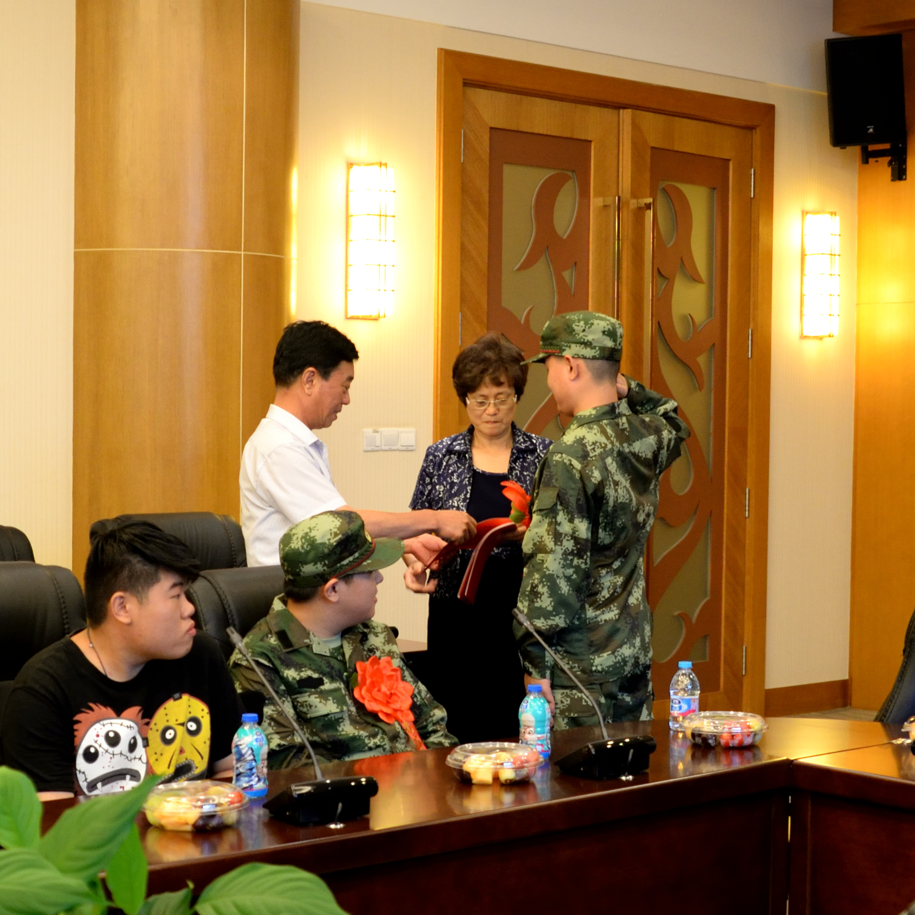 會(huì)上,武裝部部長(zhǎng)孫興強(qiáng)同志首先介紹了我校今年征兵工作開(kāi)展的基本情況,同時(shí)宣讀了2017年我院新兵名單、去向以及各兵種的集結(jié)時(shí)間。隨后,陳力華校長(zhǎng)和夏臻副書(shū)記親自向每位新兵同志頒發(fā)入伍通知書(shū)。同時(shí)學(xué)院黨政領(lǐng)導(dǎo)、武裝部、學(xué)生處領(lǐng)導(dǎo)們又向新兵贈(zèng)送紀(jì)念品并送上美好祝愿。
