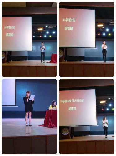 大會(huì)開(kāi)始,來(lái)自16學(xué)前2班的施琳、張怡敏同學(xué),16學(xué)前3班的蔡晨瑜同學(xué)和16學(xué)前6班的瞿菲菲同學(xué)分別從學(xué)習(xí)與實(shí)踐、藝術(shù)類(lèi)發(fā)展、學(xué)習(xí)生活和團(tuán)總支社會(huì)實(shí)踐的等角度進(jìn)行發(fā)言。副院長(zhǎng)李杰老師對(duì)他們的發(fā)言進(jìn)行了總結(jié),希望大家以這幾位同學(xué)為榜樣,找準(zhǔn)定位,堅(jiān)定目標(biāo)。