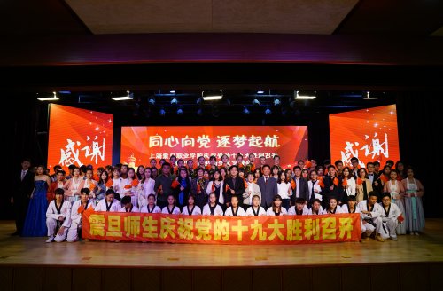 10月18日晚上18點,由校團委主辦,校學生會承辦的《同心向黨逐夢起航》上海震旦職業(yè)學院慶祝黨的十九大勝利召開暨2017級新生晚會在校大禮堂隆重舉行。校董事長張沈老師、黨委書記黃晞建教授、黨委副書記、校長陳力華教授、校黨委副書記夏臻教授,以及各職能部處室負責人、各二級學院黨政領導和輔導員老師們與學生們一起觀看了本次晚會演出,共同慶祝黨的十九大勝利召開。