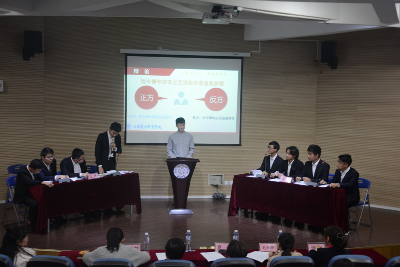 2017年10月24日下午四點三十分?!靶南凳糯螅瑺幾鲂虑嗄辍鞭q論賽如約舉行,經(jīng)過初賽和復(fù)賽的篩選,八名同學(xué)脫穎而出。本次辯論賽圍繞“當(dāng)今青年,應(yīng)該立于現(xiàn)實還是追逐夢想”展開,正方主張現(xiàn)實鋪墊夢想,而反方主張夢想照亮現(xiàn)實。
