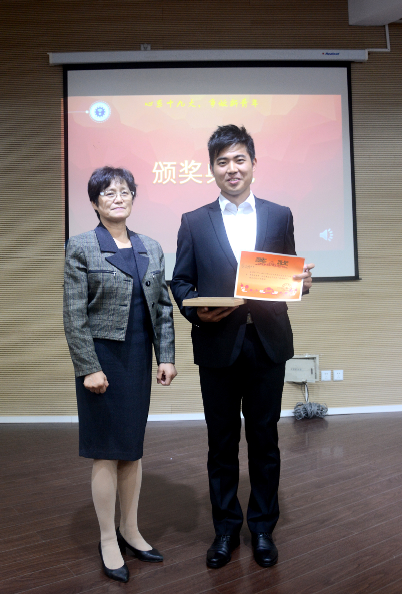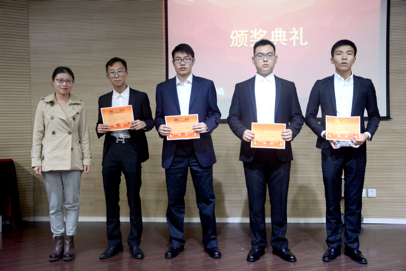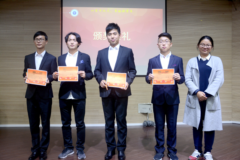 節(jié)目過后,主持人公布獲獎名單,由胡克文老師為最受歡迎辯手黃司韜頒獎,由毛燕靜老師為正方隊伍頒發(fā)一等獎,曹曉莉老師為反方隊伍頒發(fā)二等獎,由夏臻老師為最佳辯手竇金博頒獎。