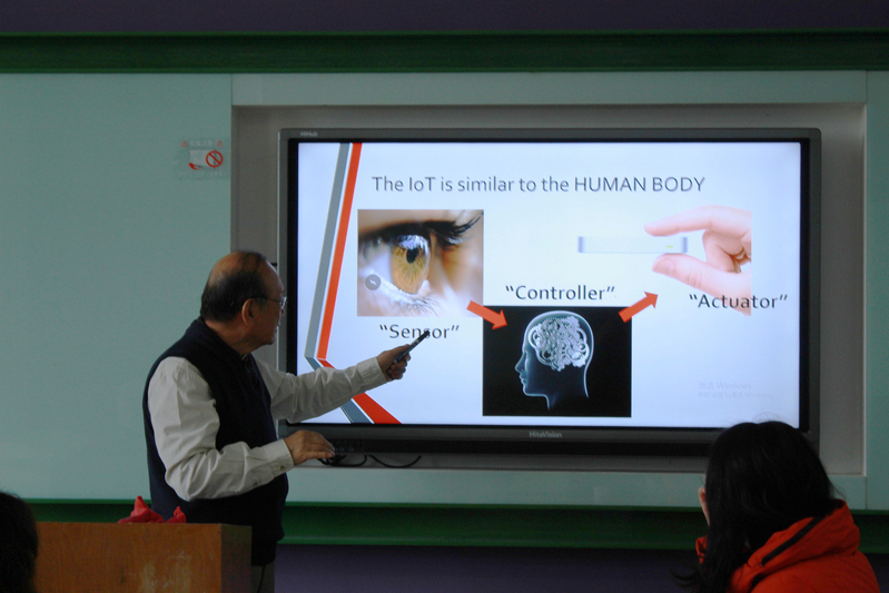 首先,Lee教授為學(xué)院全體專業(yè)教師介紹物聯(lián)網(wǎng)系統(tǒng)構(gòu)成,并詳細(xì)講述了傳感器、控制器和執(zhí)行器三個部件的結(jié)構(gòu)組成和工作原理,并展示他在我校為大一物聯(lián)網(wǎng)中美合作班學(xué)生授課項目成果---智能控制汽車,主要教學(xué)模塊包含:電路設(shè)計、芯片編程、產(chǎn)品測試等,Lee教授在上課期間,將班級同學(xué)劃分若干小組,各小組學(xué)生共同討論技術(shù)方案,協(xié)同完成各自智能控制汽車項目,取得了很好的教學(xué)效果。同時。他也向大家展示他在美國CBU指導(dǎo)大四學(xué)生所做的畢業(yè)設(shè)計---草地噴水裝置。Lee教授還介紹了世界主要汽車制造商研發(fā)無人汽車的進展情況。