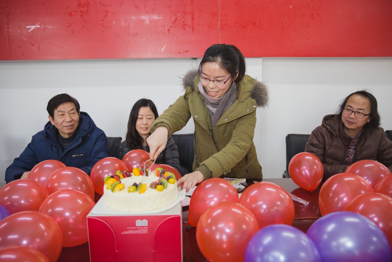 伴隨著一曲《生日快樂(lè)歌》唱響,傳媒藝術(shù)學(xué)院集體生日會(huì)拉開(kāi)帷幕,學(xué)院工會(huì)組長(zhǎng)蔡婷嬉老師捧上鮮美蛋糕,并組織大家集體合影。學(xué)院集體生日會(huì)上,學(xué)院院長(zhǎng)、黨總支書(shū)記張繼平同志首先表達(dá)了集體生日會(huì)的意義,他強(qiáng)調(diào)學(xué)校為了增強(qiáng)教職工凝聚力,積極鼓勵(lì)學(xué)院集體過(guò)生日,并給予一定的經(jīng)費(fèi)支持,今天我們利用年終總結(jié)交流會(huì)之際,一起共同慶祝全體教職工的生日,互祝生日快樂(lè)!學(xué)校人事處副處長(zhǎng)錢(qián)毅老師代表學(xué)校工會(huì)也給全體教職工送上了生日祝福。最后,由當(dāng)天過(guò)生日的輔導(dǎo)員邵慧老師為大家切蛋糕。