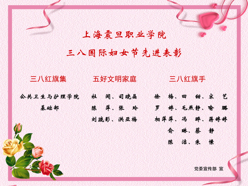 大會首先由王純玉副校長宣讀《上海震旦教育集團2017年度“三八”紅旗集體、“三八”紅旗手、“五好”文明家庭獲獎名單》,與會領導為受表彰的先進女教職工頒發(fā)榮譽證書。學校基礎部袁琨老師和機電工程學院陳萍老師分別代表三八紅旗集體和五好文明家庭上臺發(fā)言。