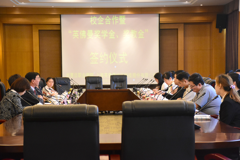 2018年5月28日,上海震旦職業(yè)學(xué)院與上海英佛曼納米科技股份有限公司獎學(xué)金·獎教金簽約儀式在我校召開。上海市寶山區(qū)科委康銳主任、寶山區(qū)人社局董海主任參會,上海震旦教育發(fā)展基金會理事長張惠莉老師、上海震旦職業(yè)學(xué)院董事長張沈老師、上海震旦職業(yè)學(xué)院陳力華校長、校辦主任張莉、機電工程學(xué)院姚黎明院長、校實踐辦葉素梅主任、校學(xué)生處毛燕靜處長,上海英佛曼納米科技股份有限公司總經(jīng)理田慶芬、田飛廠長、鮑軍部長、辦公室主任梁虹等,以及機電工程學(xué)院的師生代表參加會議。