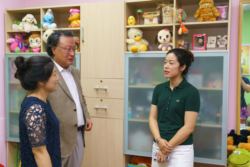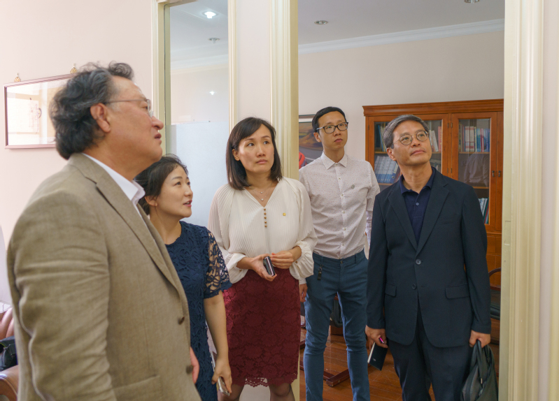 秋萬錫校長一行首先來到震旦外國語中學(xué)。震旦教育集團(tuán)創(chuàng)始人張惠莉致歡迎詞,她首先歡迎秋萬錫校長自去年之后再一次到訪震旦,并祝愿兩校今后的互訪更加多,兩校今后的交流合作能夠圓滿成功。隨后張沈董事長也表示了對(duì)秋萬錫校長一行來訪的歡迎,并期待兩校今后的合作與交流能更加密切,更加頻繁。陳力華校長代表上海震旦職業(yè)學(xué)院簽訂了兩校間交換生的合作協(xié)議。隨后,張沈董事長親自帶領(lǐng)秋萬錫校長一行參觀了震旦外國語中學(xué)。