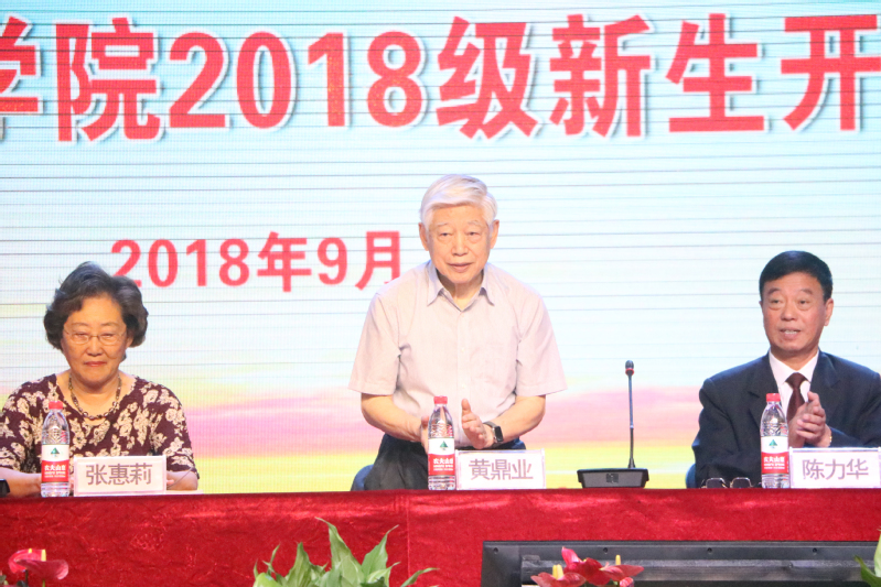 在2018級(jí)新生開學(xué)典禮上,陳力華校長對全體新生講話,主題為“書山有路勤為徑,學(xué)海無涯苦作舟”。