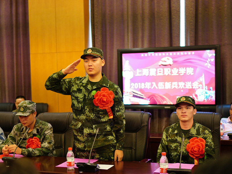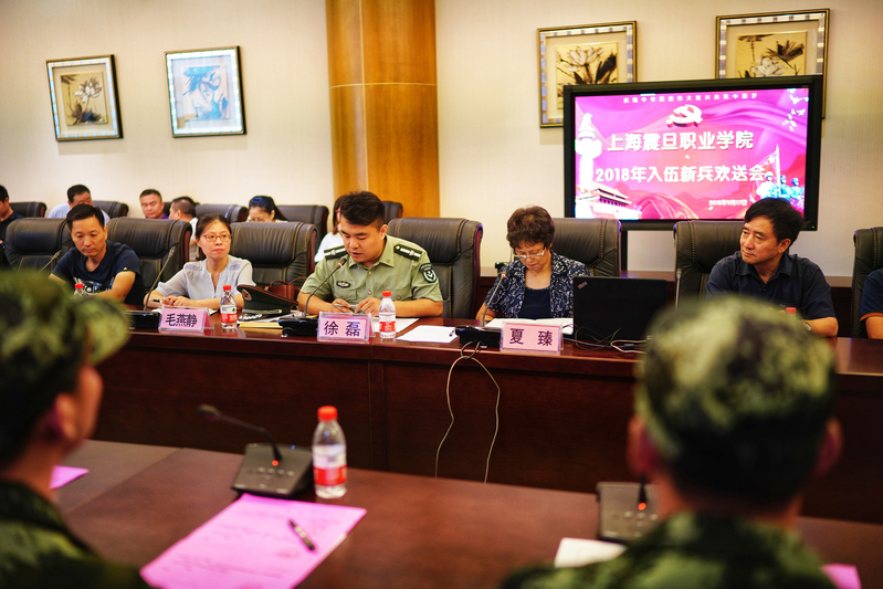 9月17日中午,我校在體藝樓國際會議中心隆重舉行2018年新兵入伍歡送大會。震旦教育集團(tuán)創(chuàng)始人張惠莉同志;黨委書記黃晞建同志;黨委副書記夏臻同志;學(xué)生處處長毛燕靜同志;后保處處長孫興強(qiáng)同志;團(tuán)委書記曹曉莉同志;各二級學(xué)院分管學(xué)生工作的黨總支書記以及相關(guān)輔導(dǎo)員老師、入伍新兵、新兵家長等60余人參加了歡送會。