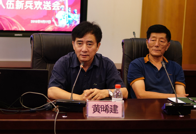 黨委書記黃晞建同志代表校黨政領(lǐng)導(dǎo)班子發(fā)言,囑咐新兵們到部隊(duì)后一定要服從命令,聽從指揮,磨練意志,用學(xué)到的一技之長為國防建設(shè)服務(wù),時(shí)刻不忘母校教誨、不忘從軍理想、不忘家人囑托、行動堅(jiān)定行進(jìn)軍營、思想穩(wěn)定扎根軍營、勤學(xué)苦練建功興業(yè)。