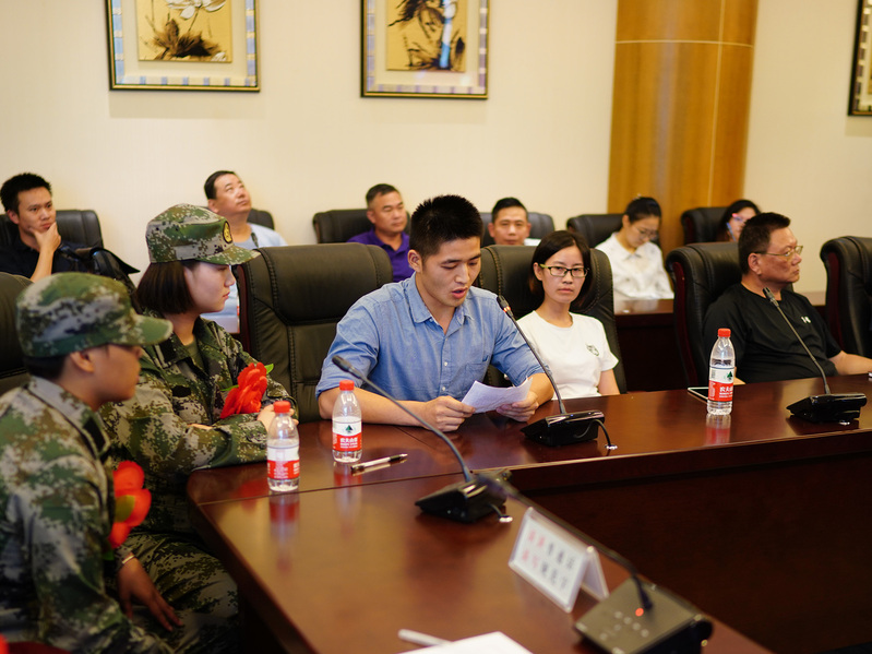 入伍新兵朱本強(qiáng)同學(xué)代表新兵發(fā)言,他表示到部隊(duì)后一定服從指揮,刻苦訓(xùn)練,不辜負(fù)校領(lǐng)導(dǎo)和老師的殷切期望。新兵宋振山父親代表所有新兵家長對學(xué)校表示了感謝,同時(shí)鼓勵(lì)孩子們在部隊(duì)努力鍛煉。今年剛剛退伍的老兵代表劉繼軍也給馬上進(jìn)入軍營的新兵們做了一份很深刻的“思想動員”,鼓勵(lì)他們勇敢面對一切困難,取得更好的進(jìn)步。