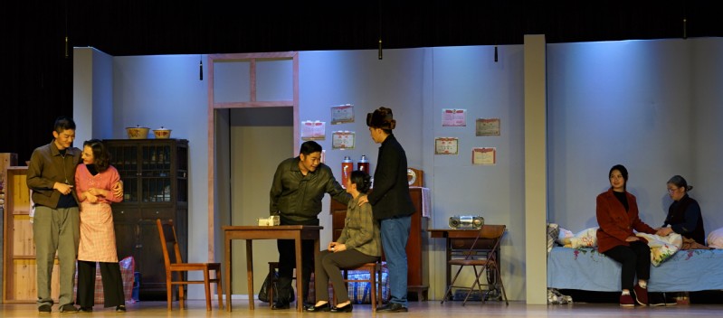 表演專業(yè)副主任宋藝?yán)蠋煋?dān)任該劇導(dǎo)演,通過仔細(xì)研究劇本和指導(dǎo)學(xué)生教學(xué)實(shí)踐,她對(duì)劇本也有了新的認(rèn)識(shí),在舞臺(tái)上對(duì)故事進(jìn)行了新的詮釋,形成了具有特色的震旦版《大哥》。16級(jí)的學(xué)生均出生在上世紀(jì)90年代后期,要他們?nèi)パ堇[出生之前的故事,理解當(dāng)時(shí)人的行為與思想,并不是件簡(jiǎn)單的事。宋藝?yán)蠋熢谂啪氝^程中,通過各種方法把學(xué)生帶入當(dāng)時(shí)的情境,一一為他們解釋劇中人的行動(dòng)線索、心理邏輯、時(shí)代背景,慢慢讓學(xué)生們“入了戲”、“動(dòng)了情”。
