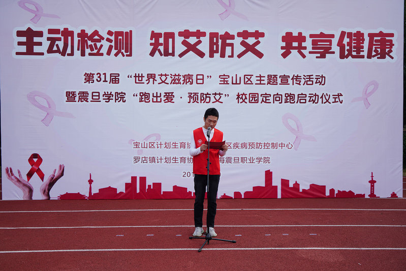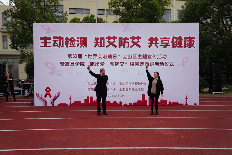 2018年12月1日是第31個(gè)“世界艾滋病日”,為進(jìn)一步推動(dòng)艾滋病防治工作,全面落實(shí)國(guó)家和上海市遏制與防治艾滋病“十三五”行動(dòng)計(jì)劃,營(yíng)造全民參與艾滋病防治工作的良好氛圍,深入開展艾滋病預(yù)防知識(shí)和反歧視理念宣傳工作,第31屆世界艾滋病日寶山區(qū)主題宣傳活動(dòng)暨我?!芭艹鰫邸ゎA(yù)防艾”校園定向跑啟動(dòng)儀式于11月30日在主校區(qū)操場(chǎng)正式舉行。出席本次活動(dòng)的領(lǐng)導(dǎo)有:市計(jì)劃生育協(xié)會(huì)周永立處長(zhǎng),寶山區(qū)衛(wèi)生計(jì)生委副主任、寶山區(qū)計(jì)劃生育協(xié)會(huì)會(huì)長(zhǎng)蘇玲女士,羅店鎮(zhèn)社會(huì)事業(yè)科主任唐秋紅女士,市計(jì)劃生育協(xié)會(huì)李琳老師,寶山區(qū)計(jì)劃生育協(xié)會(huì)金玉鳳老師、寶山區(qū)疾病預(yù)防控制中心劉效峰老師、校黨委副書記夏臻老師,來(lái)自滿天星青春健康同伴社的指導(dǎo)老師、志愿者們和校園定向跑活動(dòng)的12支隊(duì)伍共200余人參與了此次主題活動(dòng)。