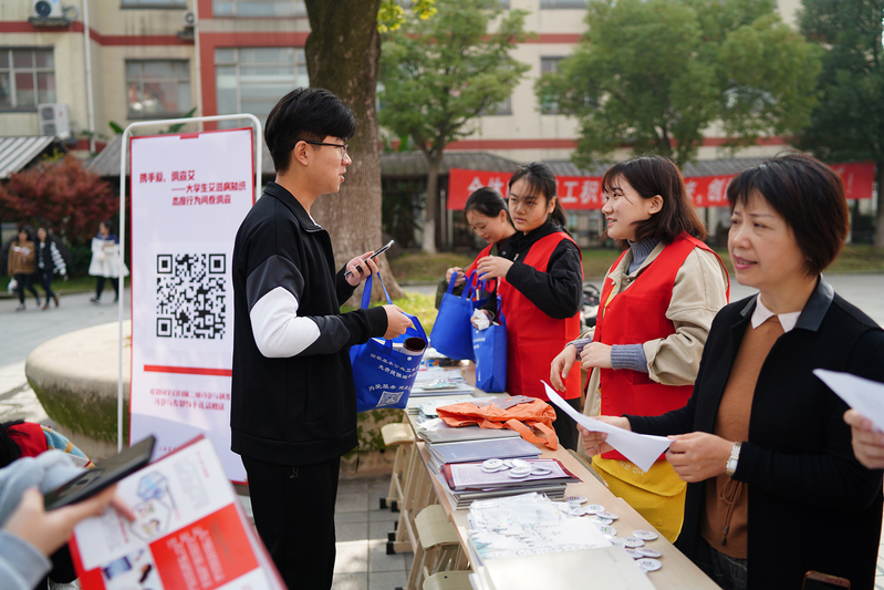 上午,寶山區(qū)計(jì)劃生育協(xié)會(huì)、寶山區(qū)疾病預(yù)防控制中心、羅店鎮(zhèn)計(jì)劃生育協(xié)會(huì)聯(lián)合我校紅十字會(huì)在文化廣場(chǎng)進(jìn)行了預(yù)防艾滋病知識(shí)擺攤宣傳活動(dòng),呼吁同學(xué)們主動(dòng)檢測(cè)、知艾防艾、共享健康。