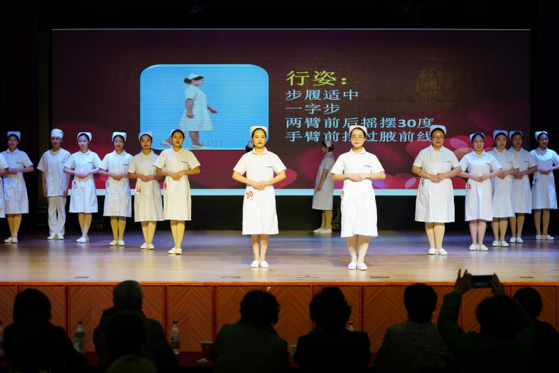 本次比賽分為個人賽和團體賽兩部分。選手們統(tǒng)一身著整潔的護士服,在個人賽部分進行了站姿、蹲姿、坐姿及搬椅子等動作的展示。挺拔、自然、優(yōu)雅的形象深入人心,贏得了觀眾的陣陣掌聲。團體賽部分,選手們以班級為單位,從端治療盤、持病歷夾、推治療車三個方面,對護理禮儀進行了精彩的展示,將本次比賽推上了高潮。經(jīng)過兩個小時的激烈角逐,本次比賽決出了個人賽、團體賽一二三等獎。