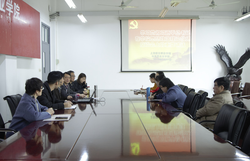 2019年3月25日,上海震旦職業(yè)學(xué)院馬克思主義學(xué)院全體思政教師集體學(xué)習(xí)貫徹習(xí)近平總書記在學(xué)校思想政治理論教師座談會上的重要講話精神,大家深受鼓舞,也深刻體會到了作為一名思政教師肩負(fù)的光榮而重大的責(zé)任。一致認(rèn)為,要不辜負(fù)黨的期望,努力工作,認(rèn)真貫徹黨的教育方針,落實立德樹人根本任務(wù),堅持教育為人民服務(wù)、為中國共產(chǎn)黨治國理政服務(wù),用新時代中國特色社會主義思想鑄魂育人。與會同志踴躍發(fā)言,就思政教學(xué)改革、課堂模式創(chuàng)新和“五年一貫制”教改發(fā)表了各自的意見。大家統(tǒng)一了思想,堅定了信心,振奮了精心,決心不負(fù)黨和人民重托,為全方位育人、全員育人,為推進教育現(xiàn)代化,為建設(shè)教育強國和推進學(xué)校的發(fā)展做出新的更大的貢獻。