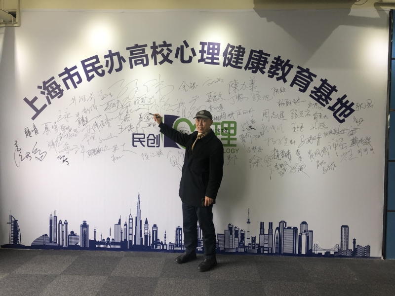 上海市學(xué)校高級(jí)心理咨詢師趙小青老師、復(fù)旦大學(xué)心理研究中心主任孫時(shí)進(jìn)老師、上海交通大學(xué)顏世富老師、上海交通大學(xué)仰頤老師先后在基地簽名墻上簽名留念。