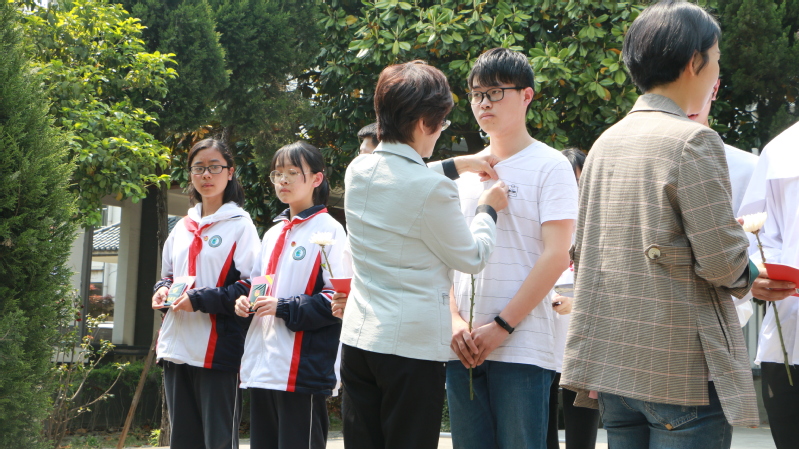 隨后,全體團(tuán)員在莊嚴(yán)肅穆的音樂(lè)中向革命烈士敬獻(xiàn)花籃、向革命烈士三鞠躬并列隊(duì)依次向革命烈士獻(xiàn)花。