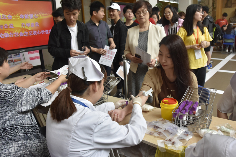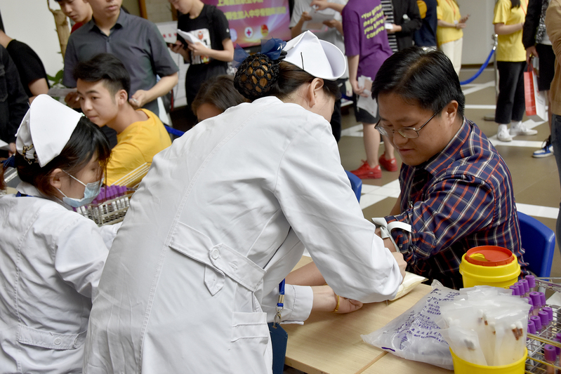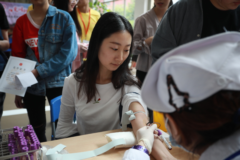 活動從上午9點持續(xù)到下午2點,前來入庫的同學(xué),在工作人員耐心細致地指導(dǎo)下進行信息登記、填寫表格。表格審核通過后,領(lǐng)取試管排隊采集6~8ml血液樣本完成入庫、領(lǐng)取榮譽證書。不僅有同學(xué)們的積極參與,我校青年教師也積極投身于此次活動中來,震旦中專鐘劼菁校長、閔亮老師和張文婧老師,公共衛(wèi)生與護理學(xué)院輔導(dǎo)員耿梅老師、張超老師、劉嬌嬌老師,教育學(xué)院張可可老師、李婧老師、王芳老師和信息辦程茂華老師也擼起袖子志愿加入中華骨髓庫,成為其中的一員。我校自2012年開展造血干細胞志愿者招募活動以來,今年已經(jīng)是第8個年頭了,震旦師生為這項活動付出了很大的努力,也將在學(xué)校領(lǐng)導(dǎo)的支持和帶動下,把這項活動辦出品牌、辦出特色。