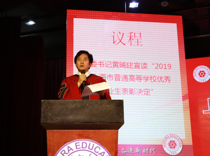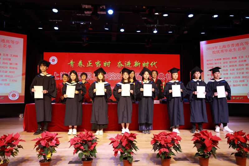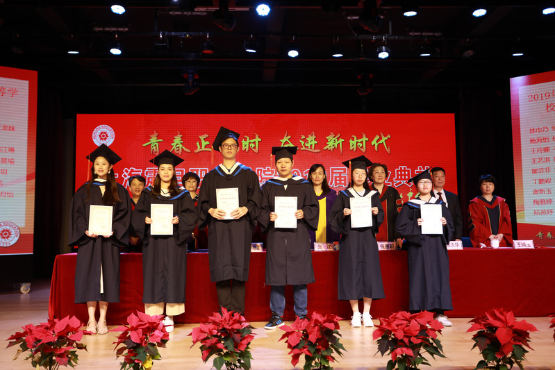 典禮在莊嚴(yán)的國歌聲中展開序幕。首先黃晞建書記宣讀《2019年上海市普通高等學(xué)校優(yōu)秀畢業(yè)生表彰決定》;董事長張沈宣讀《2019年上海震旦職業(yè)學(xué)院優(yōu)秀畢業(yè)生表彰決定》;黨委副書記夏臻宣讀了《2019屆畢業(yè)生中考取全日制專升本學(xué)生名單》。表彰決定宣讀完畢,上海市高校優(yōu)秀畢業(yè)生以及校級優(yōu)秀畢業(yè)生依次上臺領(lǐng)取榮譽(yù)證書并合影。
