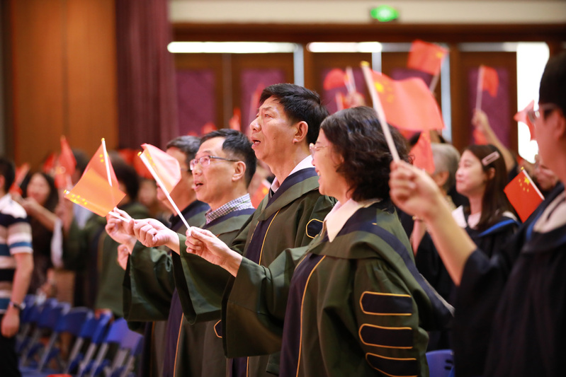 2019年正值新中國成立70周年、五四運(yùn)動100周年之際,畢業(yè)典禮現(xiàn)場全體畢業(yè)生和教職工共同高唱《我和我的祖國》、《畢業(yè)歌》,揮動國旗為祖國獻(xiàn)禮,為祖國祝福。畢業(yè)典禮圓滿落幕。
