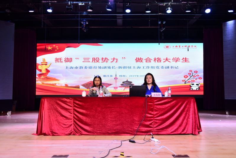 2019年10月18日下午,上海市教委德育處副處長、新疆駐上海工作組黨委副書記謝昌蓉在我校大禮堂,為2019級新疆籍學(xué)生做了一場題為“抵御‘三股勢力’,做合格大學(xué)生”的精彩講座。本次講座由上海震旦職業(yè)學(xué)院學(xué)生處處長毛燕靜主持,上海震旦職業(yè)學(xué)院全體2019級新疆籍學(xué)生、2019級輔導(dǎo)員老師參加。