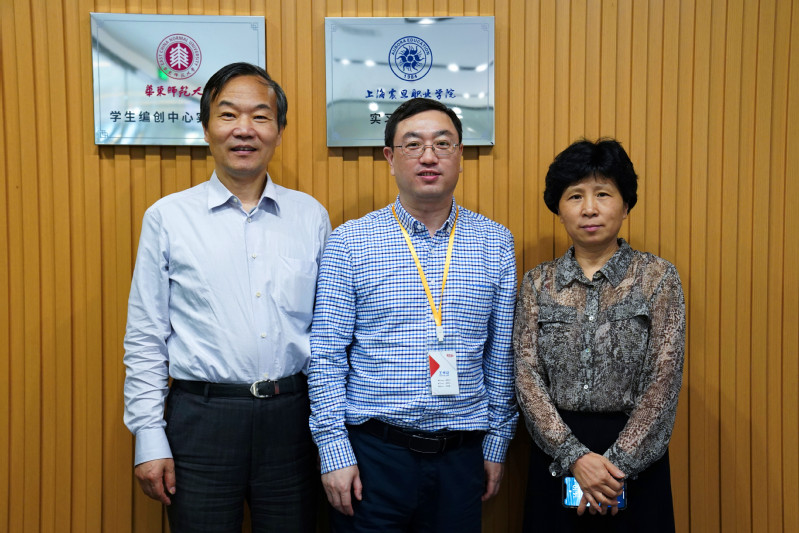 公司總經(jīng)理邱寶林對(duì)上海震旦職業(yè)學(xué)院領(lǐng)導(dǎo)和老師的來訪表示歡迎,他陪同王校長、喬校長一行參觀了愛豆堡直播基地的直播間、演播室及后期制作等場地,隨后共同為愛豆堡“上海震旦職業(yè)學(xué)院實(shí)踐基地”揭牌。