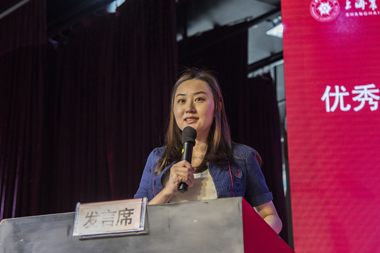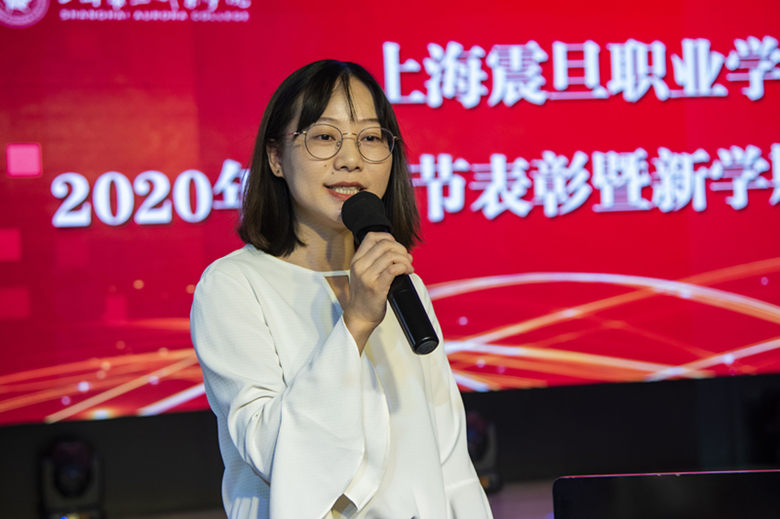優(yōu)秀園丁獲獎教師葉子發(fā)言,她訴說了自己多年來的教學(xué)感悟和心得,并感謝學(xué)校領(lǐng)導(dǎo)的大力支持和學(xué)院教師給予的無私幫助,向震旦所有默默付出的教師致敬。