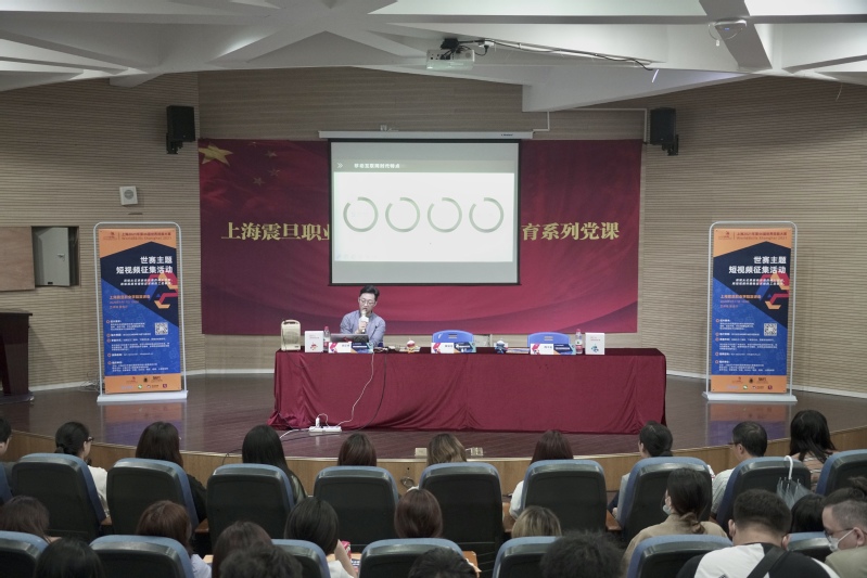 上海溫哥華電影學(xué)院樊懿博老師為與會學(xué)生進行了短視頻攝制技術(shù)指導(dǎo),他通過大量案例,從創(chuàng)意到拍攝再到最后的制作及特效進行了分析講解,同時還根據(jù)賽事中常見的問題,梳理出賽事的內(nèi)容、格式等細節(jié)要求,講解深入淺出,與會學(xué)生受益匪淺。