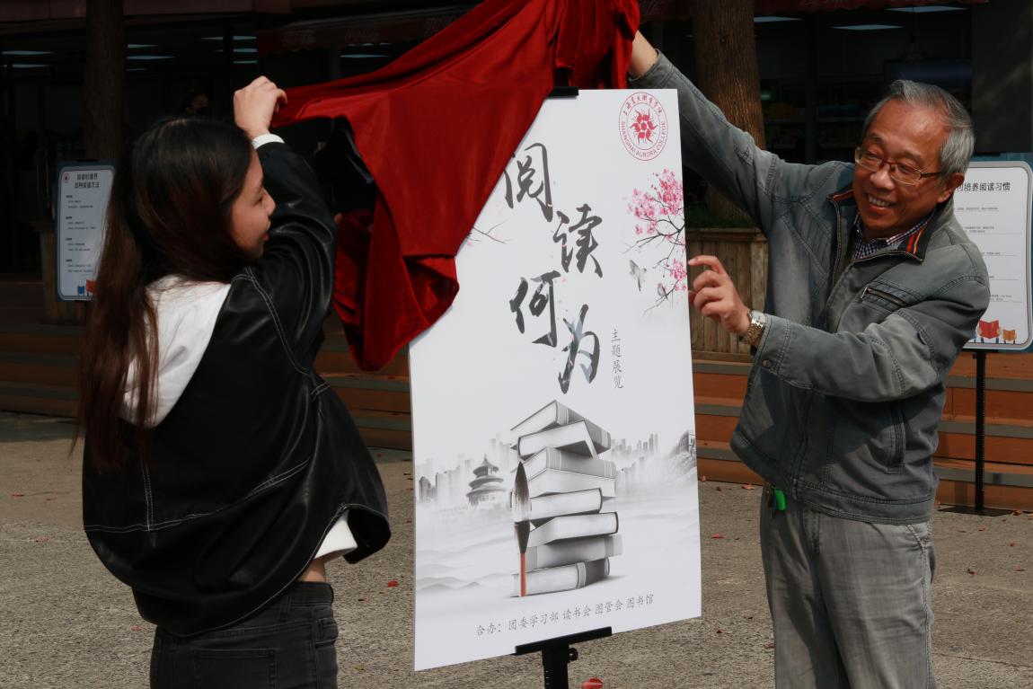 圖書館張健館長(zhǎng)和團(tuán)委張雪琴老師共同為這次活動(dòng)進(jìn)行揭幕