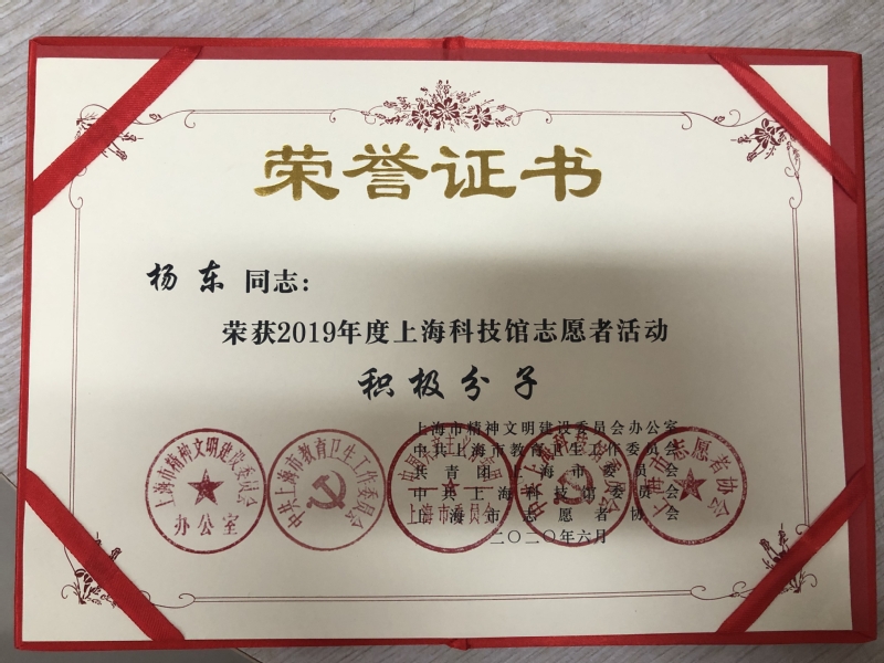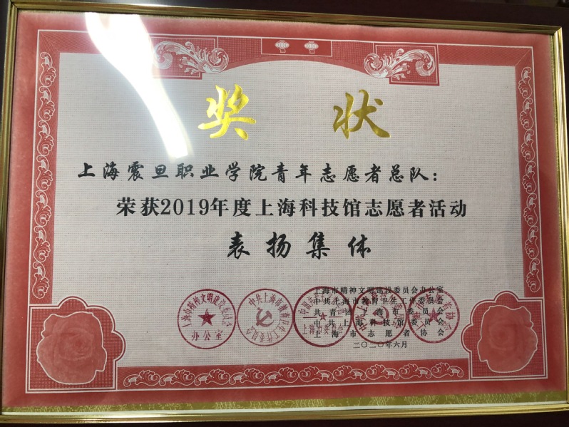在2019年度上??萍拣^志愿服務(wù)工作中,我校榮獲“2019年度上海科技館志愿者活動表揚(yáng)集體”稱號,經(jīng)濟(jì)管理學(xué)院團(tuán)總支書記鹿群老師被授予“2019年度上??萍拣^志愿者活動優(yōu)秀組織者”稱號,社會實(shí)踐部謝王磊、楊東、徐定祥同學(xué)被授予“2019年度上??萍拣^志愿者活動積極分子”稱號。