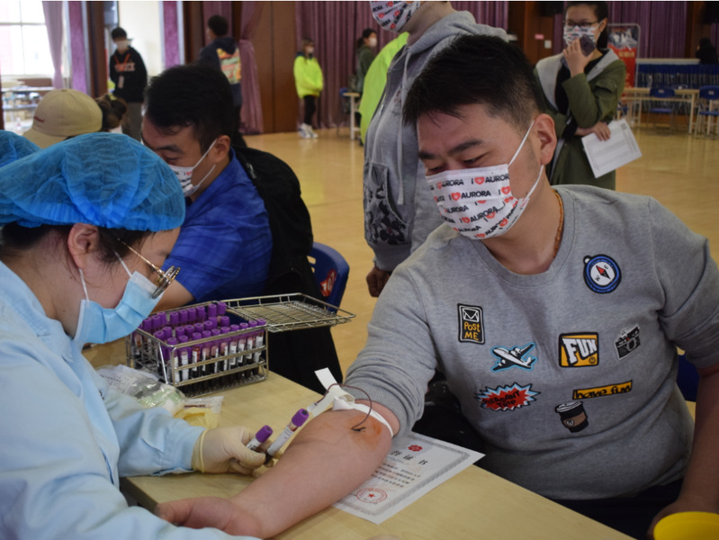 活動從上午9點持續(xù)到下午2點,前來入庫的同學(xué)們統(tǒng)一有序地戴好口罩、測量體溫、出示綠色隨申碼,在工作人員耐心細致地指導(dǎo)下領(lǐng)取表格,進行信息登記。信息核對通過后,有間隔地排隊采集6-8ml血液樣本完成入庫,領(lǐng)取榮譽證書。