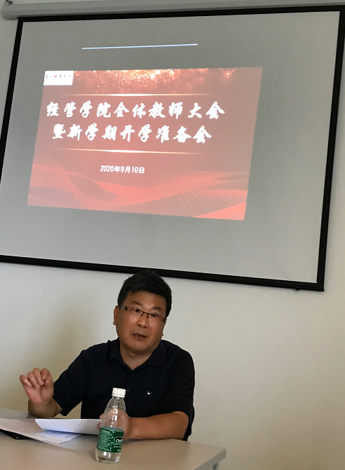 金秋九月,秋風送爽,在第36個教師節(jié)之際,經(jīng)濟管理學院在六樓實訓室召開了《2020-2021學年第一學期經(jīng)濟管理學院教師大會暨青年教師說課會》,學院全體教師參會,會議由學院院長胡守忠教授主持。