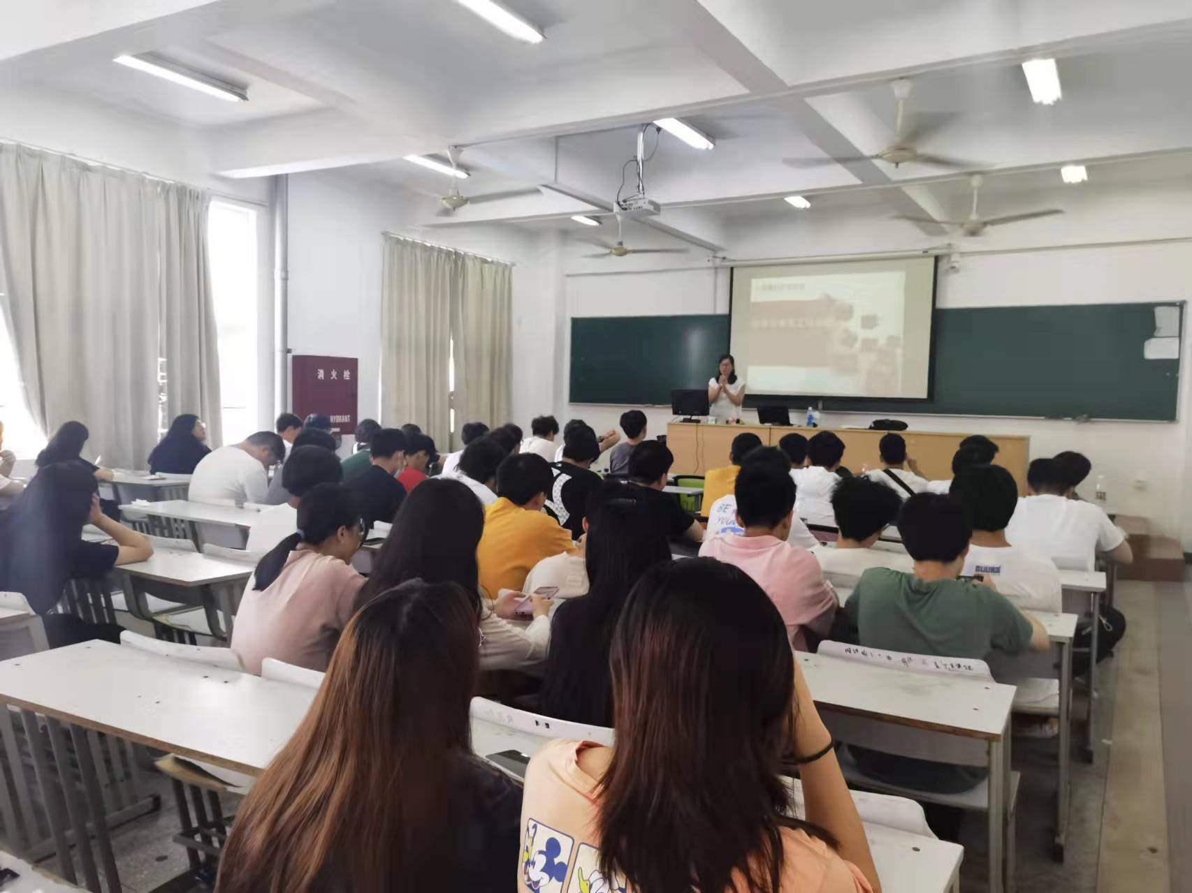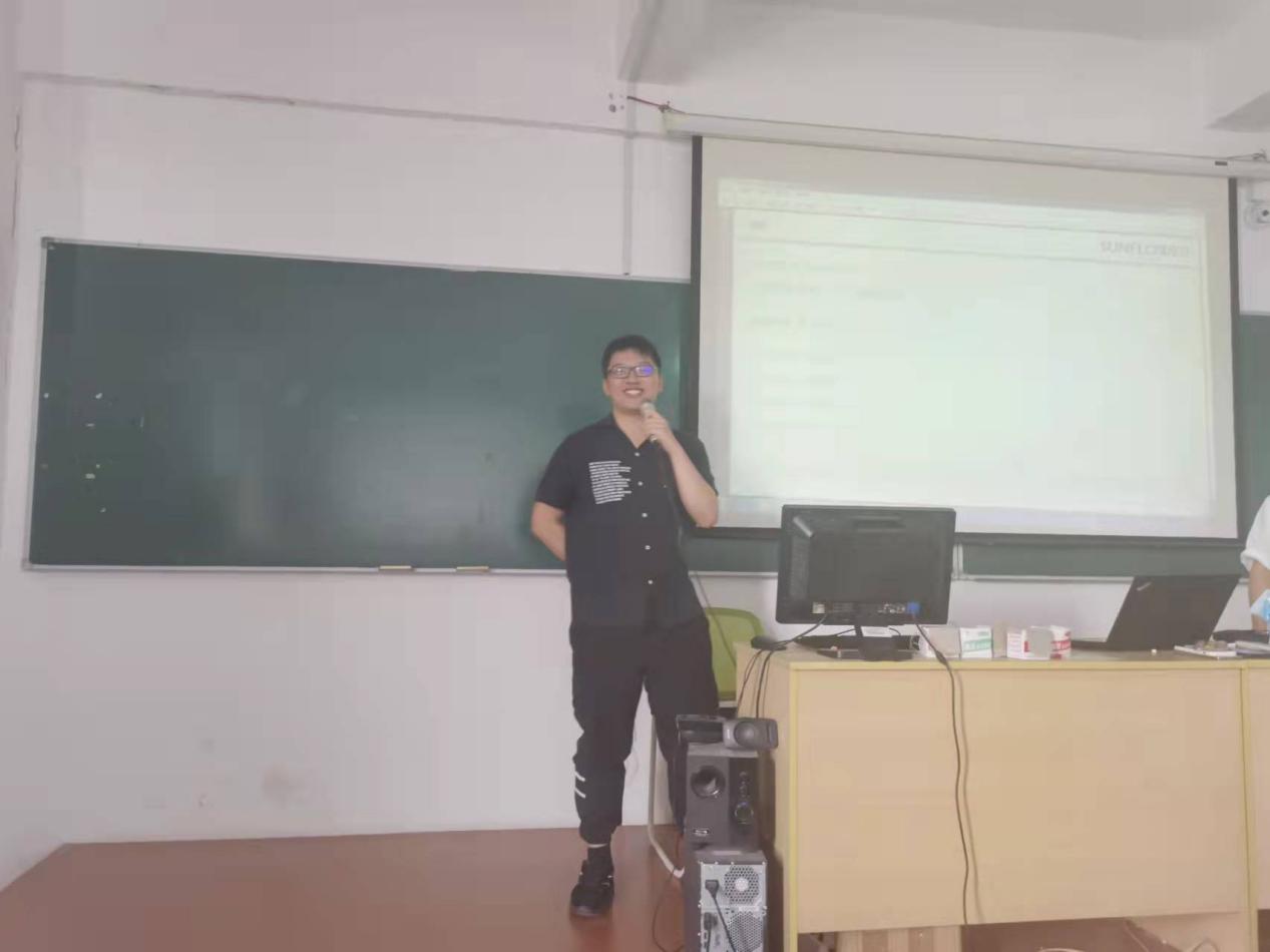 產(chǎn)業(yè)學(xué)院代表張老師讓同學(xué)們先思考為什么來讀大學(xué)?三年后想成為怎樣的自己?然后對(duì)數(shù)字媒體專業(yè)的行業(yè)背景、向日葵產(chǎn)業(yè)學(xué)院情況進(jìn)行了簡單的介紹,并展示了企業(yè)的部分真實(shí)項(xiàng)目案例。隨后對(duì)專業(yè)相關(guān)就業(yè)崗位的需求和薪資進(jìn)行了分析,號(hào)召同學(xué)們腳踏實(shí)地、認(rèn)真學(xué)習(xí)、努力考證、積極參加各類比賽和實(shí)訓(xùn)。
