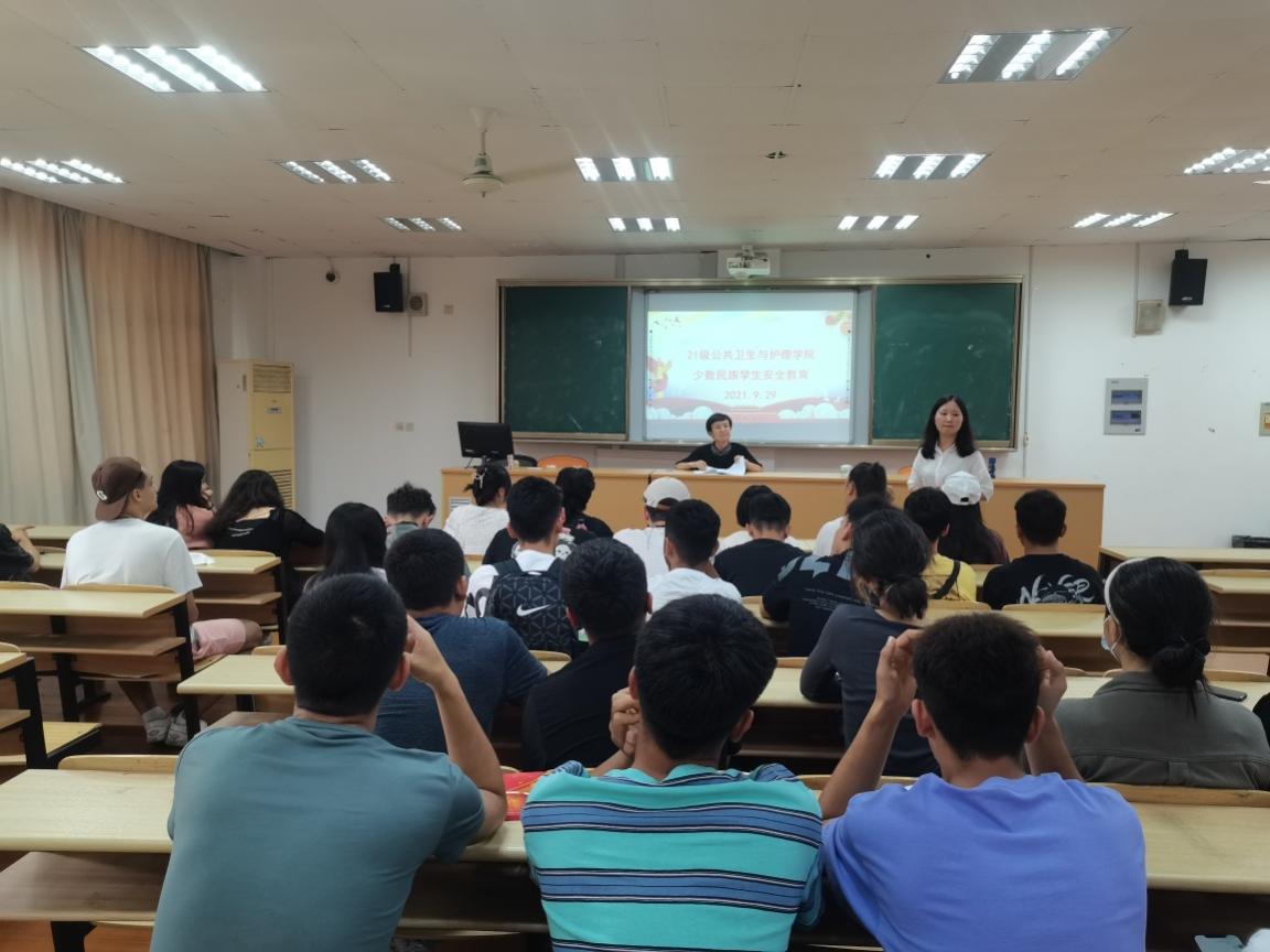 2021年9月29日,公共衛(wèi)生與護(hù)理學(xué)院邀請學(xué)校內(nèi)派教師巴了黑婭為學(xué)院21級少數(shù)民族學(xué)生開展了安全教育座談會。學(xué)院黨總支書記王文華、各班級輔導(dǎo)員以及少數(shù)民族同學(xué)參加了此次座談會。