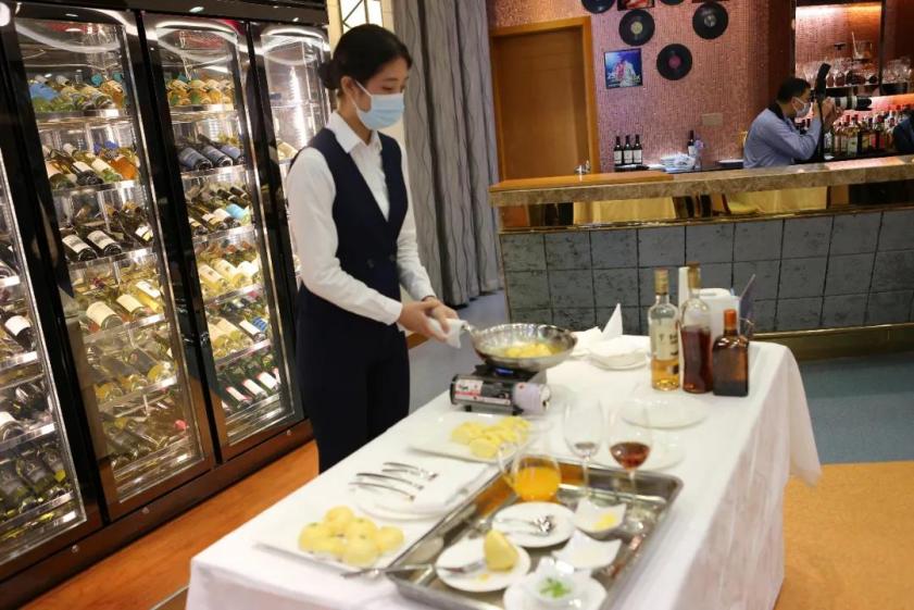 本次比賽項目主要是運用豐富的國際美食和服務(wù)等方面的專業(yè)知識,依據(jù)服務(wù)規(guī)范以及比賽要求完成咖啡制作、雞尾酒調(diào)制、水果拼盤制作、菜肴烹制、餐前準(zhǔn)備等比賽內(nèi)容,然后運用嫻熟的服務(wù)技能、有效的溝通技巧、良好的禮儀舉止為客人提供優(yōu)質(zhì)餐飲服務(wù)的競賽項目。指導(dǎo)老師周燕萍、包一芳在集中備賽環(huán)節(jié)現(xiàn)場教學(xué),親自示范,并手把手教學(xué),同時模擬現(xiàn)實餐飲服務(wù)環(huán)境,克服學(xué)生餐飲項目實操的短板,并為了模擬比賽環(huán)境,帶領(lǐng)同學(xué)們到兄弟院校,進(jìn)行比賽環(huán)境的體驗。