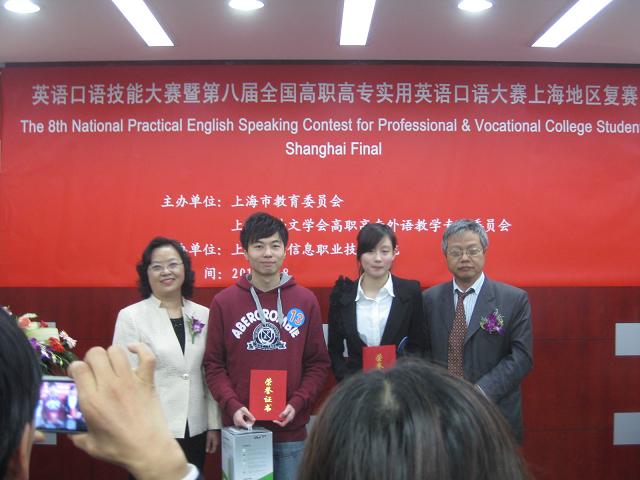 外語系俞洋同學(xué)榮獲第八屆全國高職高專實(shí)用英語口語大賽上海地區(qū)一等獎