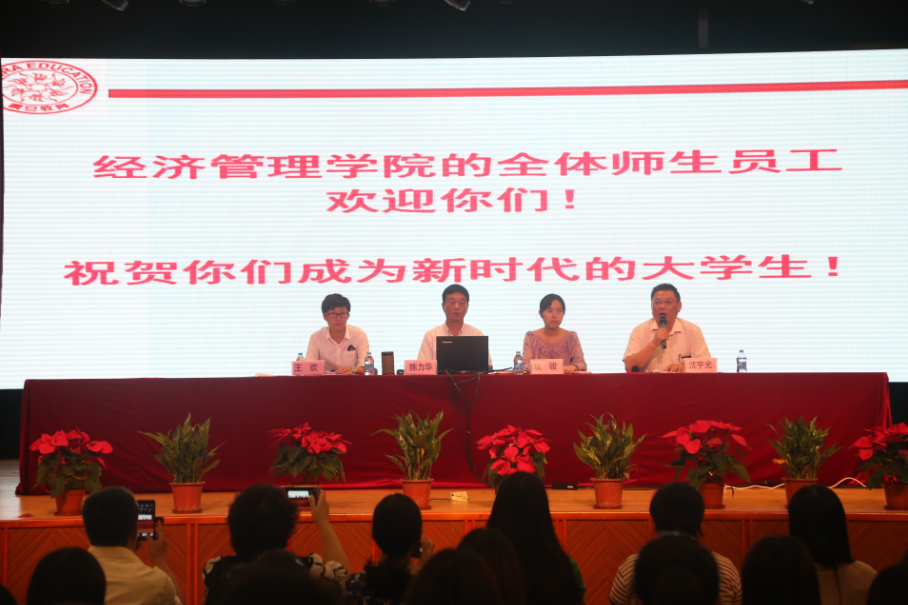 2015年9月16日,經(jīng)濟(jì)管理學(xué)院2015級(jí)新生開(kāi)學(xué)典禮在學(xué)校大禮堂舉行。出席開(kāi)學(xué)典禮的有震旦職業(yè)學(xué)院“十三五規(guī)劃”起草領(lǐng)導(dǎo)小組組長(zhǎng)、資深管理學(xué)教授——陳力華老師,黨總支書記王歡老師,院長(zhǎng)助理皮駿老師,以及經(jīng)濟(jì)管理學(xué)院全體教職工。開(kāi)學(xué)典禮由黨總支副書記沈宇光老師主持。