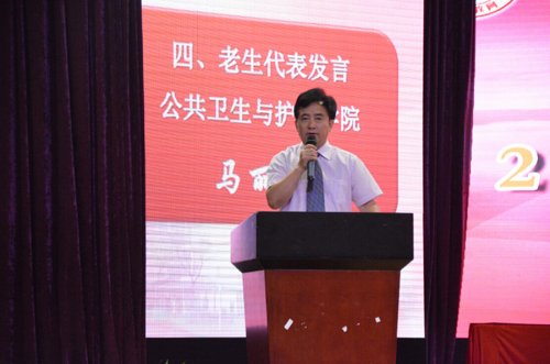 學(xué)生會(huì)主席、新聞傳媒學(xué)院的徐劍明同學(xué)、公共衛(wèi)生與護(hù)理學(xué)院的馬麗娜同學(xué)代表老生發(fā)言,他們和學(xué)弟學(xué)妹們分享了自己的在學(xué)期間的心得和成長(zhǎng)經(jīng)歷,她們鼓勵(lì)新生珍惜校園生活,扎實(shí)走好每一步。