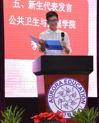 公共衛(wèi)生與護(hù)理學(xué)院新生代表李燦同學(xué)發(fā)言