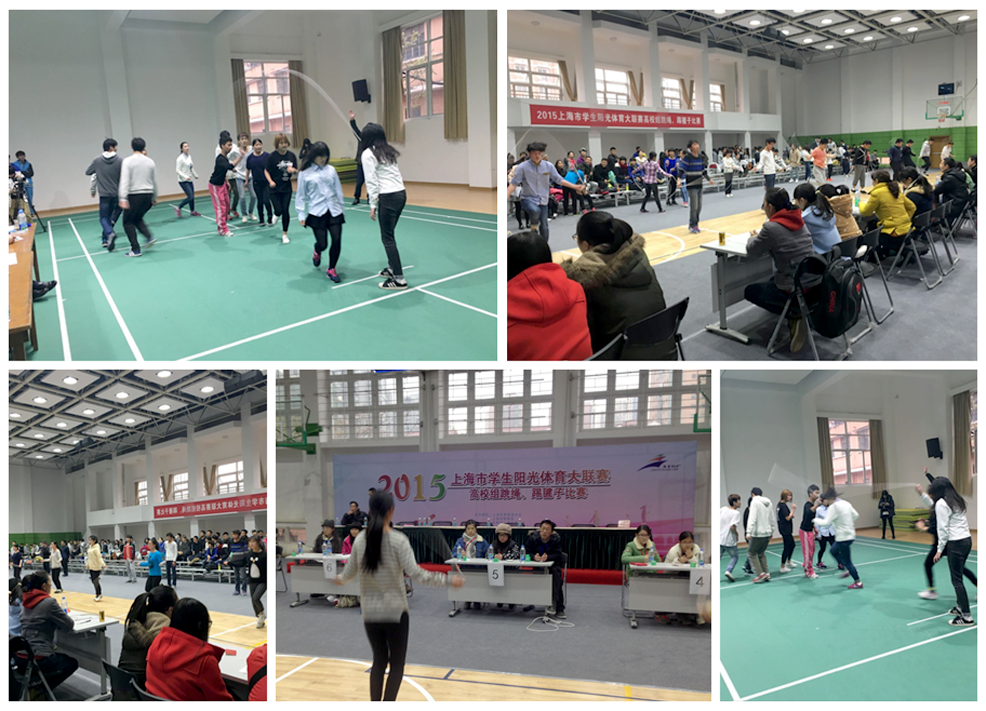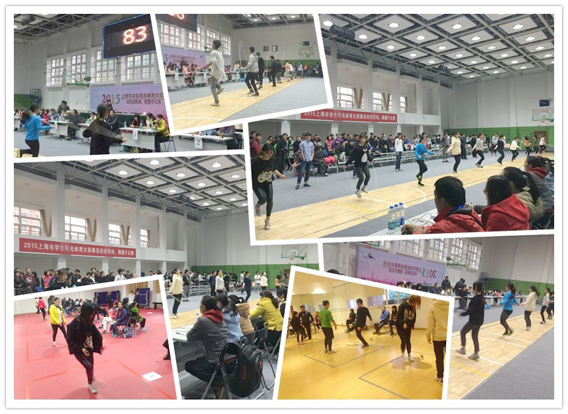 我院65名同學(xué)在教練朱新帥老師帶領(lǐng)下,參加了2015上海市學(xué)生陽(yáng)光體育大聯(lián)賽高校組跳繩、踢毽子比賽,同學(xué)們分別參加了男女短繩、男女踢毽子、長(zhǎng)繩、單搖接力、男女對(duì)踢共七個(gè)項(xiàng)目?! ?/font>