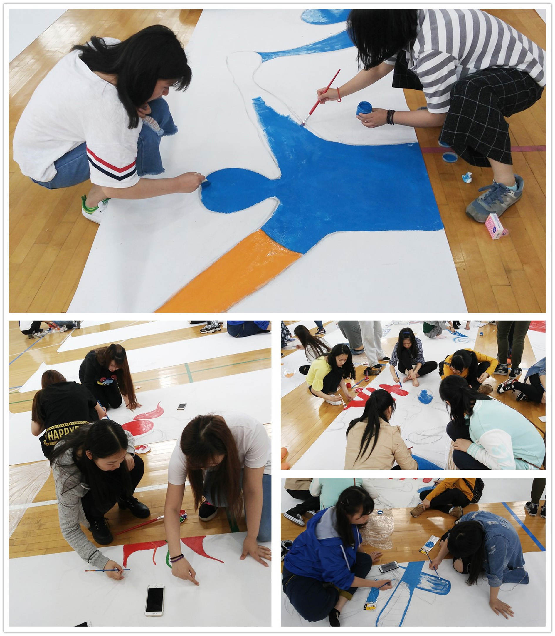 5月20日,我校根據(jù)上海市學(xué)生心理健康教育發(fā)展中心下發(fā)的“2016年度上海學(xué)校心理健康教育活動月”的通知,切實貫徹以“以表達性藝術(shù)輔導(dǎo)”為主要載體的文件精神,為提升我校學(xué)生的心理健康水平,上海震旦職業(yè)學(xué)院心理健康教育中心特組織開展了團隊巨畫活動。團隊巨畫是我校2016年度心理健康活動月系列活動中非常重要的一項活動。