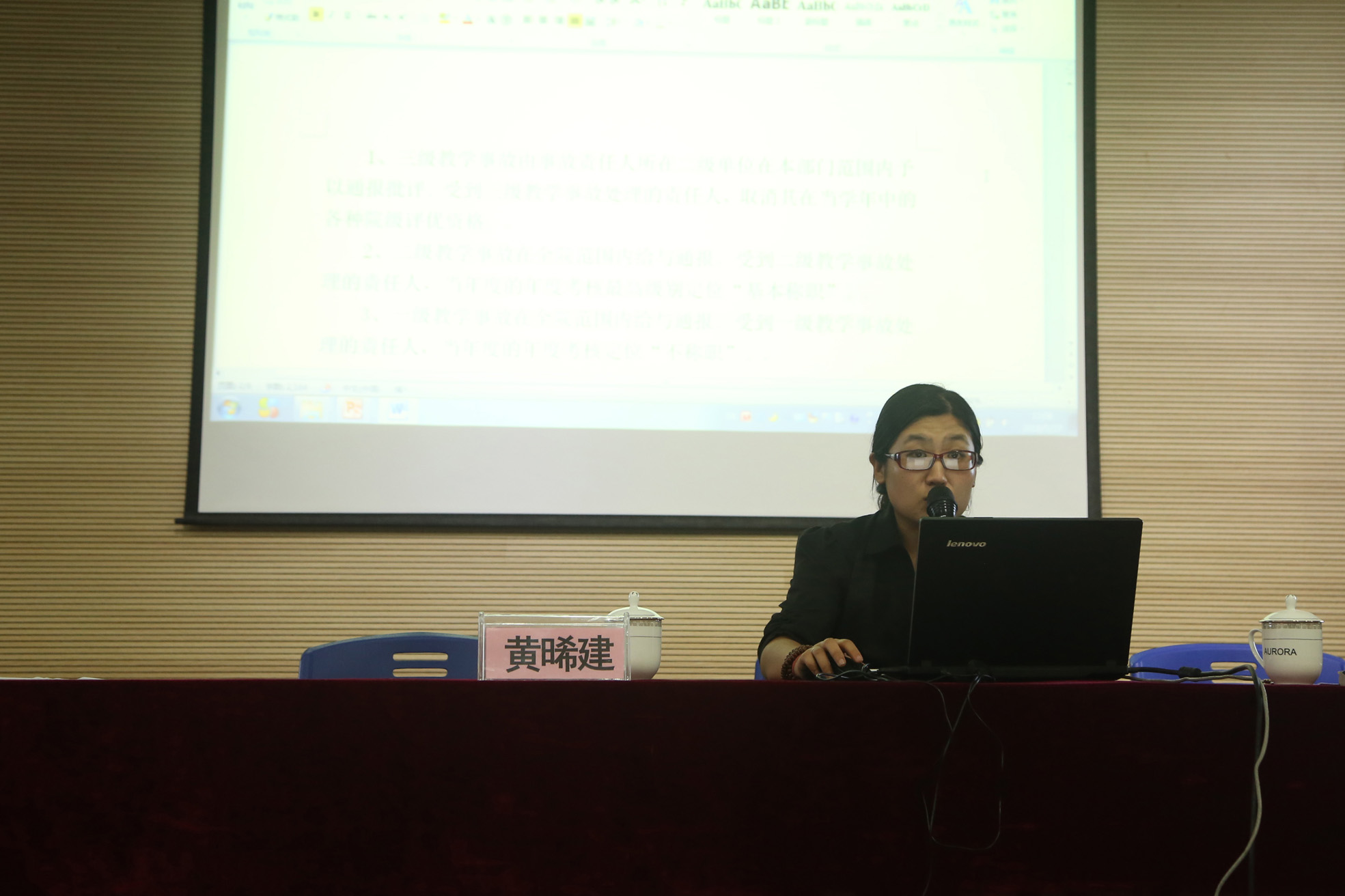 會議伊始,教務(wù)處張瑩副處長作“加強制度建設(shè)、規(guī)范教學(xué)管理”的匯報,梳理了學(xué)院現(xiàn)有教學(xué)管理文件,經(jīng)過此次修訂和新增共有43個文件,從學(xué)籍管理、課務(wù)管理、考試管理、教材管理、教學(xué)質(zhì)量監(jiān)控與評價、教研課改、實踐教學(xué)等規(guī)范教育教學(xué)全過程,切實做到教育教學(xué)管理有“章”可循,有“法”可依。