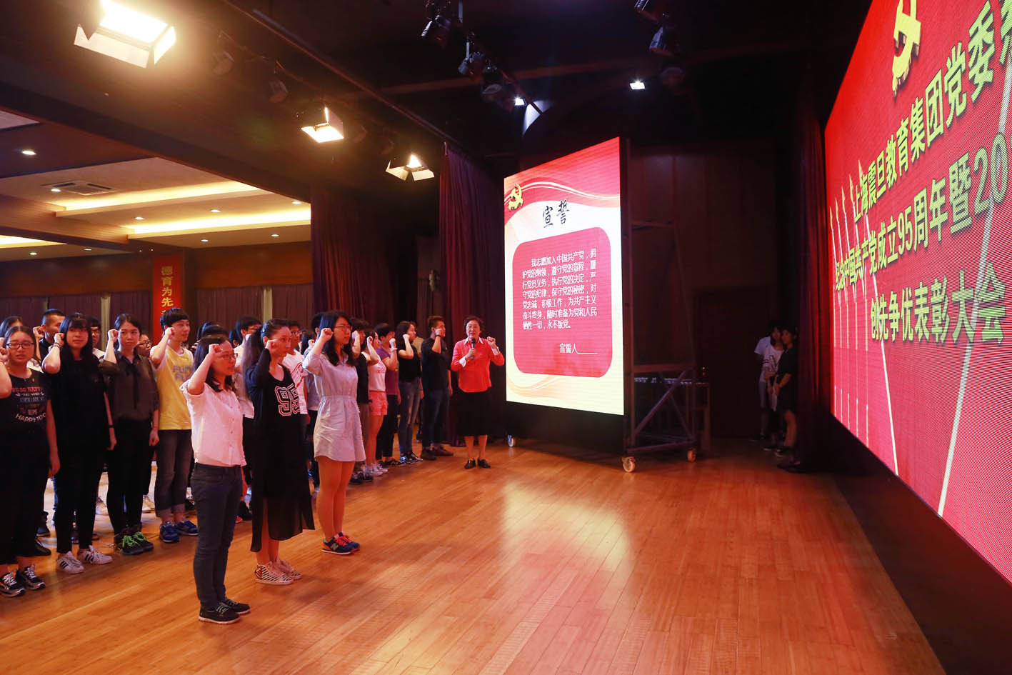 黨委委員、震旦教育發(fā)展基金會張惠莉理事長帶領61名新黨員在黨旗下宣誓