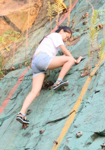 攀巖過程中,老師怕女生體力不夠,讓她們稍微爬一段感受一下就可以下來,但我們的“娘子軍”幾乎每個人都努力爬到了頂峰。讓人感動的是,男生們都自覺站在巖面的最下方,為女生們架起保護屏障,并告訴他們自己爬過的經(jīng)驗,例如哪塊巖石較小或哪塊有些松動千萬不能踩。