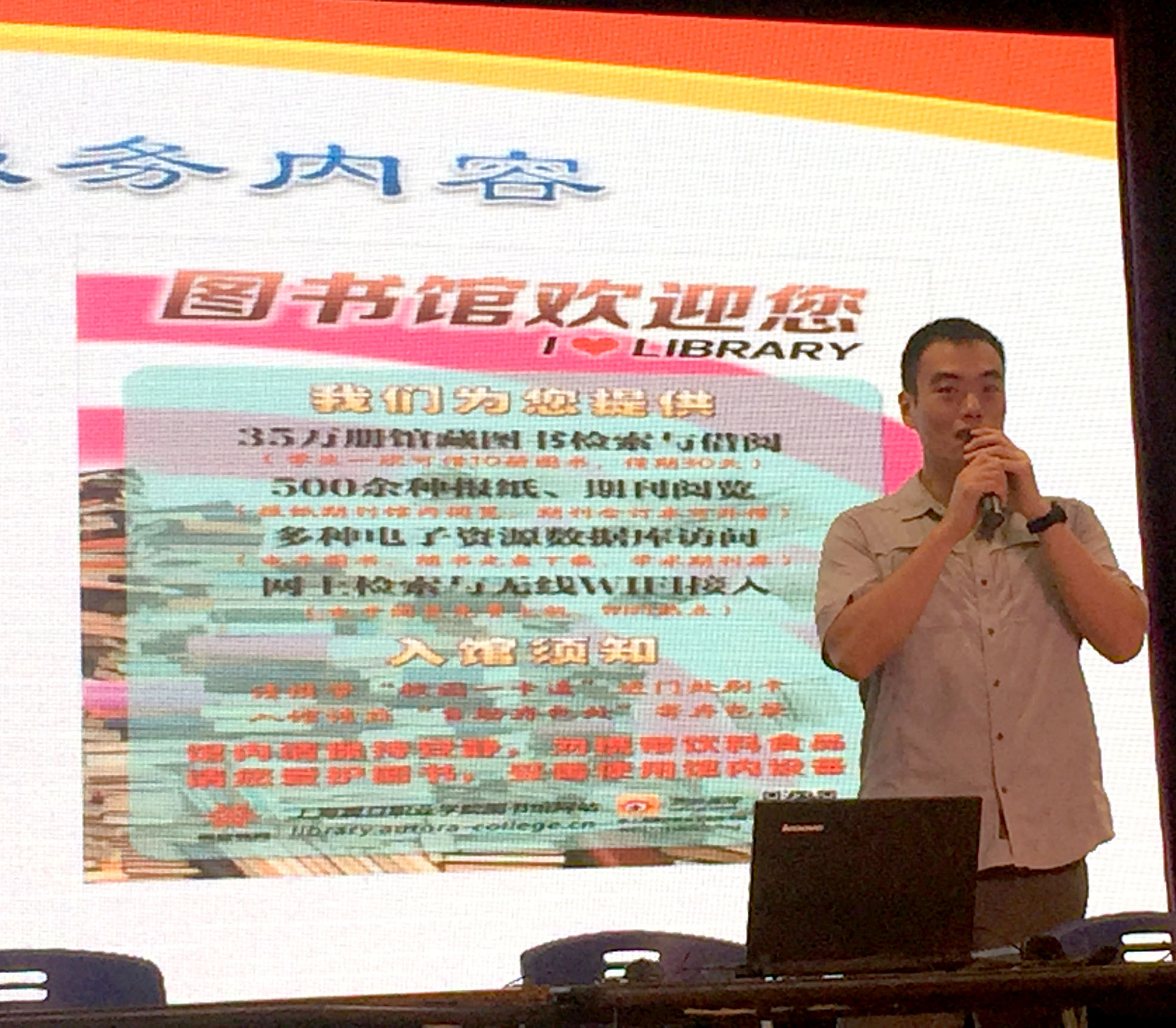 再次,學(xué)院圖書館李斯聰老師為全體新生介紹了圖書館為師生們服務(wù)的內(nèi)容,例如:圖書館的地點(diǎn)、開(kāi)放時(shí)間、服務(wù)內(nèi)容、入館須知、借還書須知以及網(wǎng)上查閱的方式等,并介紹了在學(xué)院官網(wǎng)上查閱各類書籍和資料的方法。