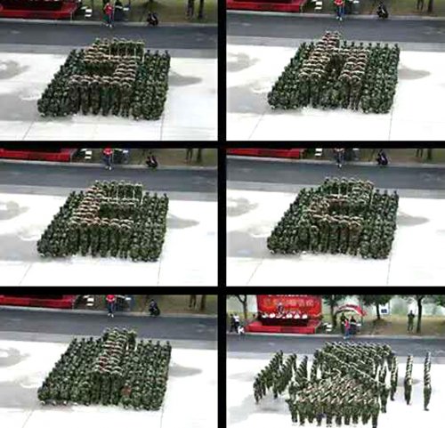 參加軍訓(xùn)的全體新生按照軍訓(xùn)的編隊序列,排列成21個整齊的方隊,以迎接學(xué)院黨政領(lǐng)導(dǎo)的檢閱。陳力華院長檢閱了各軍訓(xùn)方隊。