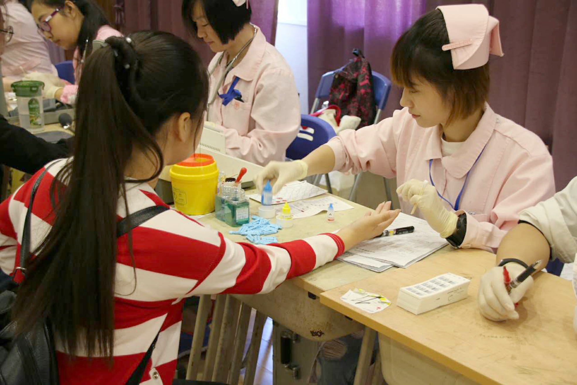 參加本次活動(dòng)的志愿者共有21名,其中15應(yīng)用英語(yǔ)專業(yè)的李亞楠既是志愿者又是獻(xiàn)血者,她表示自己已經(jīng)是第二次來(lái)獻(xiàn)血了,家長(zhǎng)也十分鼓勵(lì)。