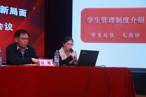 會(huì)議由學(xué)生處處長(zhǎng)毛燕靜介紹了校學(xué)生管理制度體系和輔導(dǎo)員管理制度體系;黨委副書記夏臻作主題報(bào)告;院長(zhǎng)陳力華作重要講話。